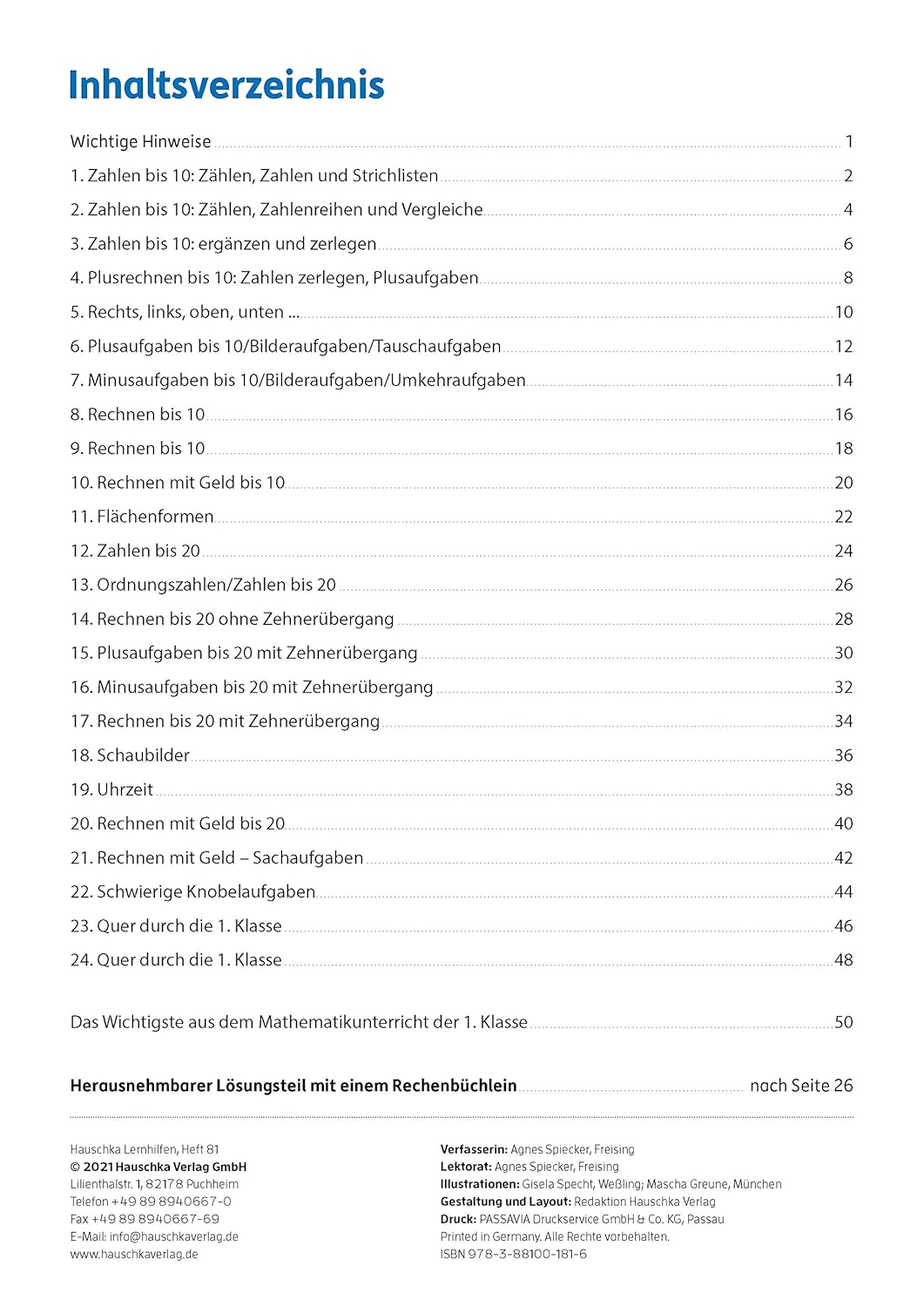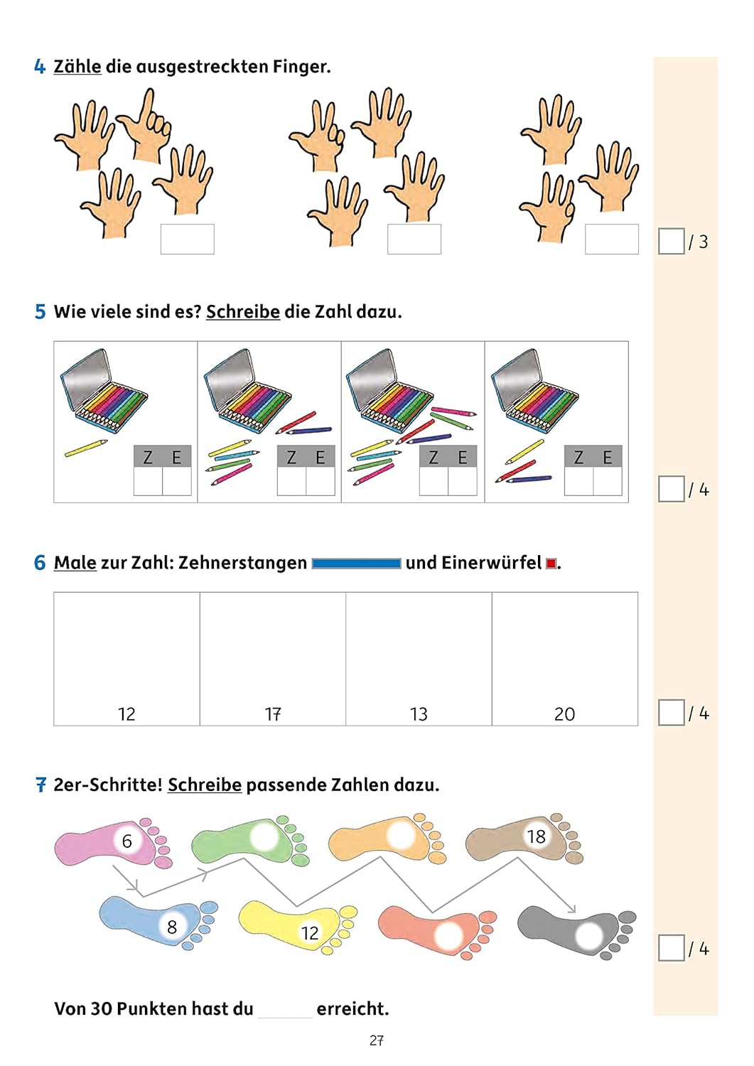 So gibt es Tests zu folgenden Themen: Zahlenraum bis 10 bzw. bis 20,